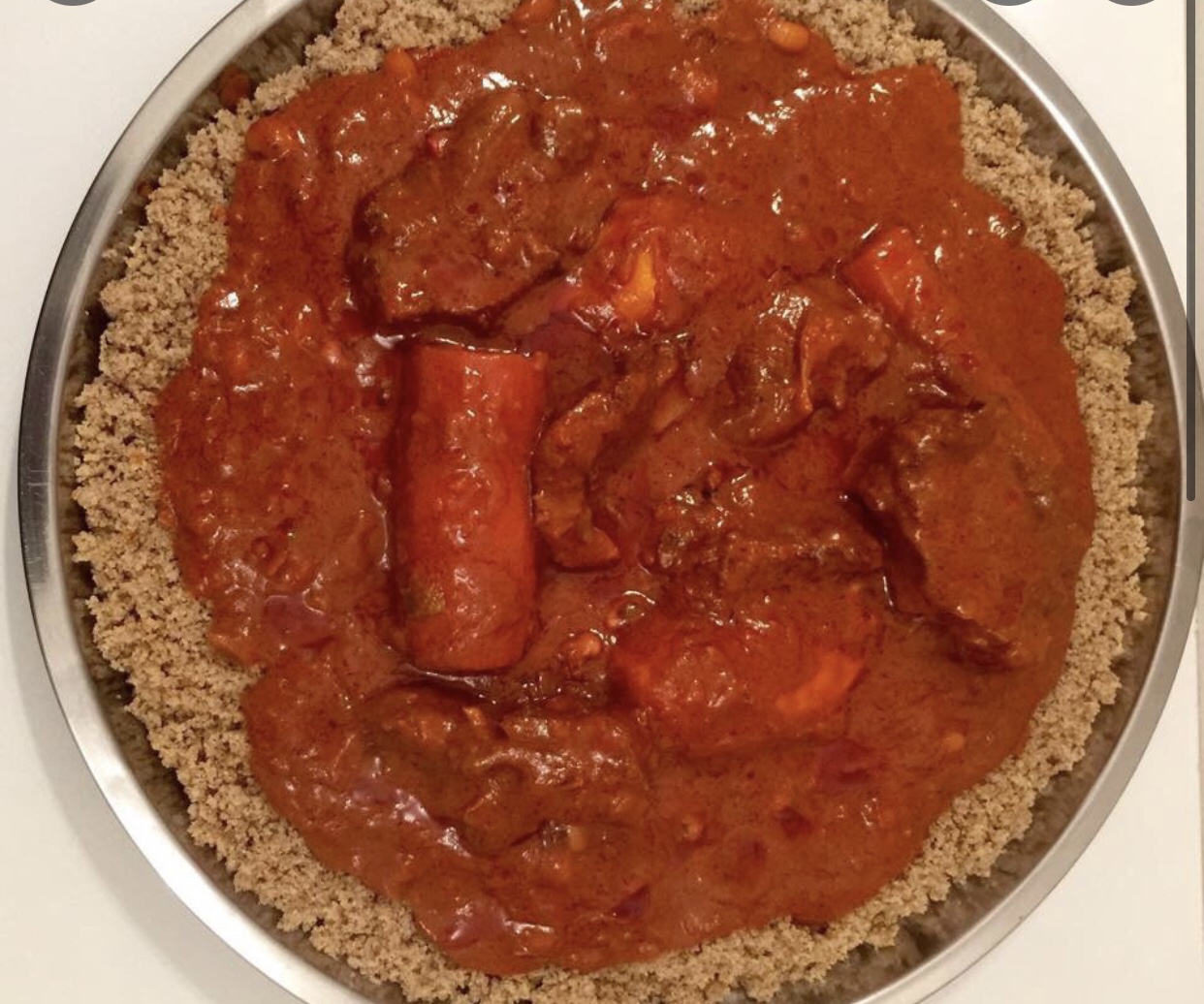 Pour préparer un bon thiere bassi salte il faut: La veille, faite tremper les haricots de Cornille dans un grand récipient d’eau froide. Le lendemain,égouttez-les et réservez. Ensuite éplucher l’ oignon, les gousses d’ ail et placez-le en morceaux et ajoutez- le dans le bol. Saler et poivrer ajoutez le cube de bouillon. Mixez versez l’ huile dans une grande cocotte et faites chauffer. Lorsque l’ huile es chaude,ajouter la préparation précédente. Faites mijoter 10minutes. Ajouter la viande et poursuivez la cuisson pendant 10 minutes. Ajoutez les haricots et laisser cuire à feu doux 10 minutes. Ajoutez le concentré de tomates, les tomates coupées en dés. Poursuivez la cuisson 10 min. Pendant ce temps, épluchez les carottes et les patates douces. Coupez- les en petits dés. Ajoutez – les dans la cocotte. Laissez mijoter 5 min en remuant régulièrement. Ajouter la pâte d arachide. Mélangez bien afin de bien diluer. Ajoutez l’ eau, les feuilles de laurier. Laisser cuire pendant 25 min à feux doux. Dégustez chaud
